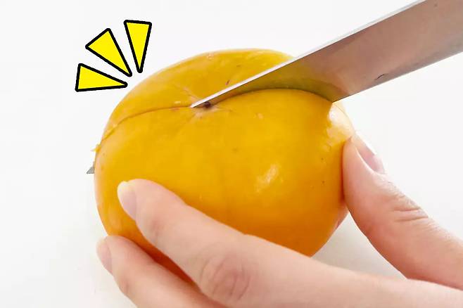 방법은 아주아주 간단해요. 자르는 방향만 제대로 안다면 씨를 피해 단감을 자를 수 있어요.
