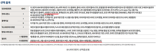 당연히 옵션이 들어가면 좋겠지만 자연스럽게 가격이 올라가죠. 그리고 그걸 엄청나게 민감하게 생각하는 합리적인 분들도 많습니다. 그런 분들이라면 당연히 기본 등급인 '프리미엄' 등급에서 필요한 것들만 넣을 고민을 하시게 되겠죠.