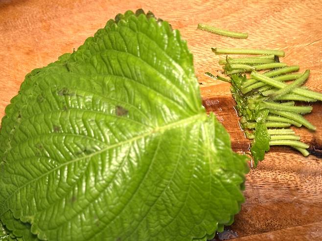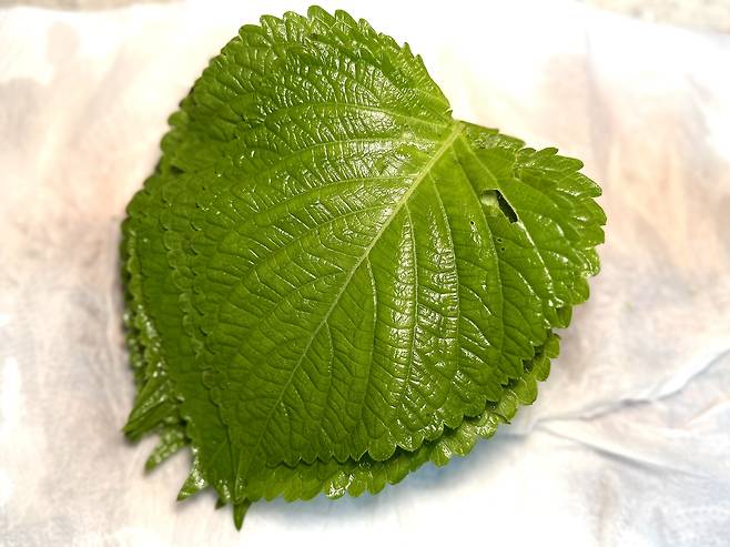 1️⃣ 깻잎 꼭지 부분은 잘라주시고, 키친타월로 물기를 제거해주세요.