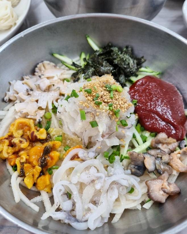 최강 물회 달인의 맛집 포항 '마라도회식당'. 제철 해산물이 넉넉하게 들어간 최강 달인 물회는 약간 거칠게 썰린 회가 특징으로 물회 양념이 회에 잘 스며들게 하는 포항물회만의 비법이란다. 특허받은 이 집의 물회 육수는 매년 2톤가량의 매실을 직접 담가 만든 매실액에 멸치, 다시마, 과일 등을 넣어서 개발했다. 회를 고추장에 비벼서 반쯤 먹다가 나머지 반은 육수를 부어 먹는데 육수의 새콤달콤한 감칠맛이 일품으로 시원하면서 개운한 맛이 달인의 맛집답다.