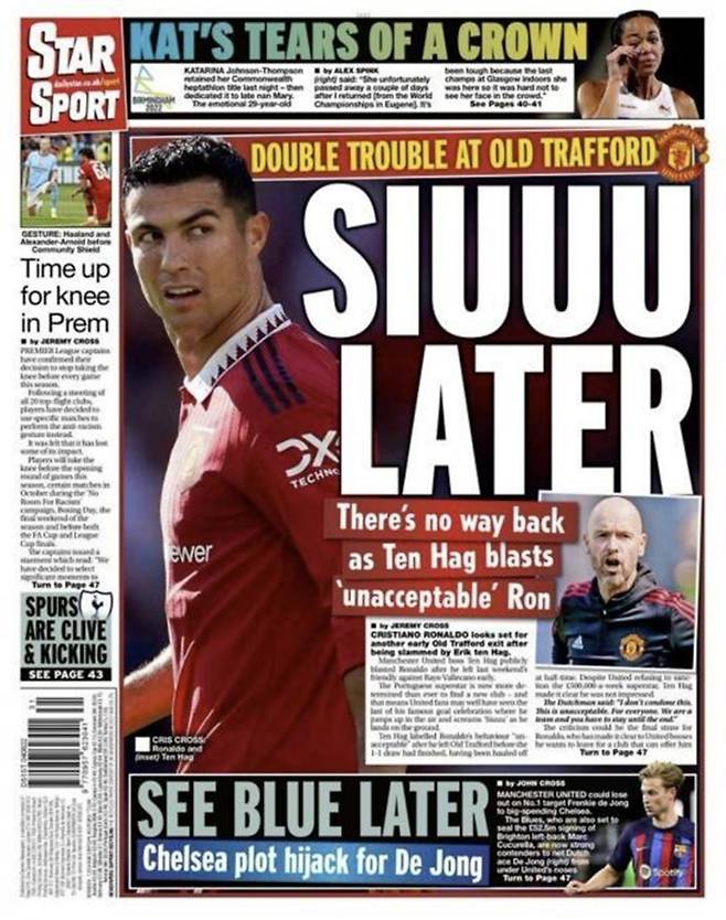 현지 언론도 호날두의 태도에 실망한 듯 조롱에 나섰다. 영국 언론 '데일리스타'는 나중의 보자는 뜻의 영어 발음을 사용한 말장난으로 호날두를 놀렸다. 평소 골을 넣으면 양손과 양발을 벌려 점프한 뒤 '호우(Siu)'를 외치는 호날두의 세리머니에 빗대 'Siuuuuu Later'라고 이적에 실패하고 맨유에서도 주전을 내준 상황을 꼬집었다.