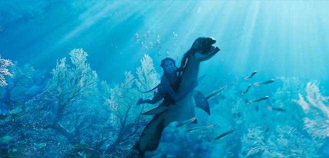 18분 푸티지 영상에서 느껴지는 <아바타: 물의 길>은 부제에서 설명되듯이 수중 장면이 등장합니다. 1편이 판도라의 우림 지역과 광산 개발에 관한 생태계 파괴와 위협을 다루었다면, 2편에서는 바다 생태계와 파괴를 말한다고 밝혔습니다.