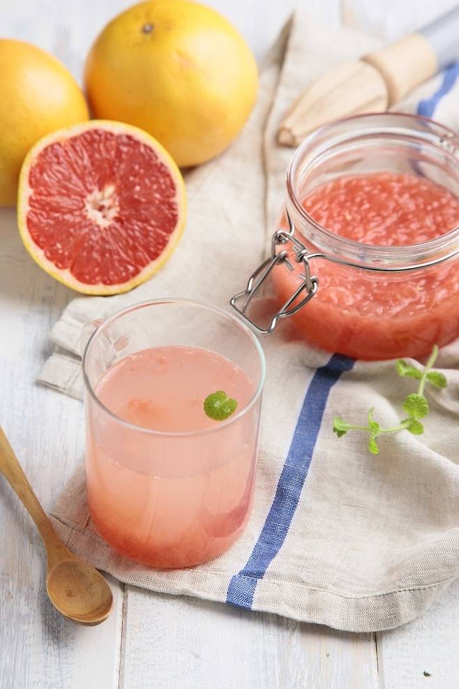 자몽청을 만들어 먹는 것은 아주 좋은 방법. 4월까지 수확하는 플로리다산 자몽은 당도가 높고 과즙이 풍부해 생으로 먹어도 맛이 좋지만 청을 만들어 두고두고 먹기에 더욱 적합하다. 자몽청을 만들어 두면 얼음과 탄산수와 섞어 에이드 형태로 즐길 수도 있고, 따뜻한 차로도 즐길 수 있다. 또한, 설탕 대신 드레싱이나 소스를 만들 때 추가하면 더욱 상큼한 맛을 즐길 수 있다. 간장과 자몽청을 동일비율로 섞어 만드는 간장 자몽 드레싱은 샐러드는 물론 해산물과 놀라운 궁합을 자랑한다. 자몽의 씁쓸한 맛 때문에 부담스러운 사람들은 자몽에 토마토 또는 요구르트를 섞어 갈아 마시거나 기호에 따라 꿀을 넣어 마셔도 좋다. 씁쓸한 맛은 줄어들고 맛은 배가시킨다.
