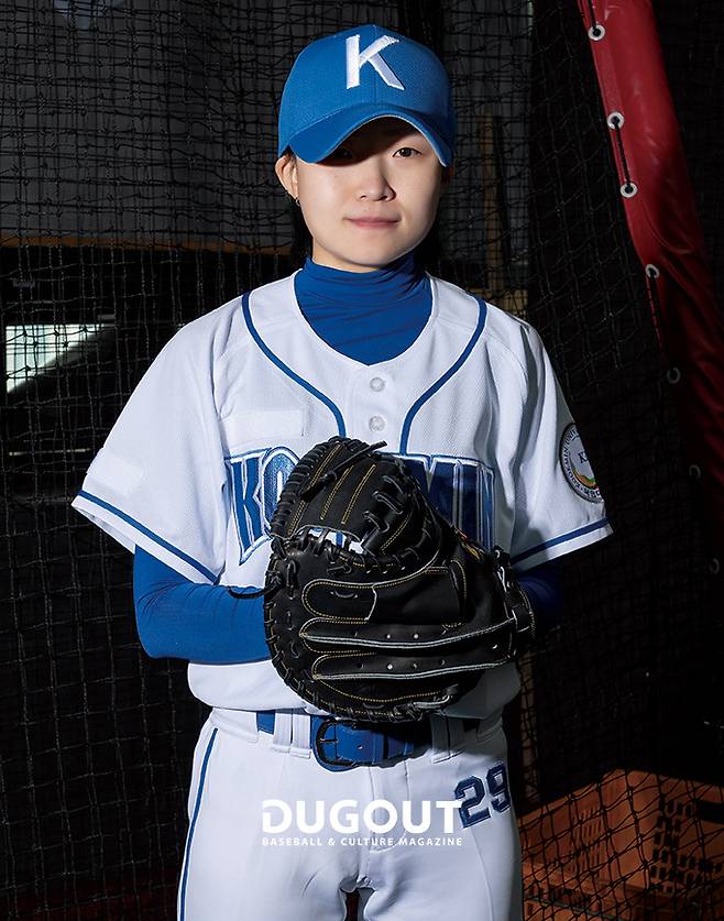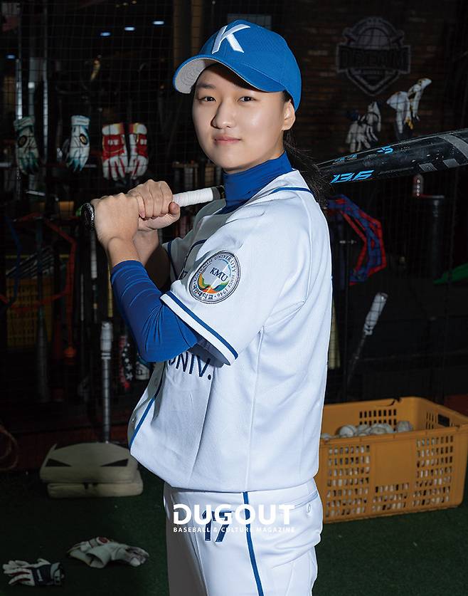 <더그아웃 매거진> 대학 선수 코너에 여자 선수로는 첫 등장이에요. 자기소개 부탁해요!