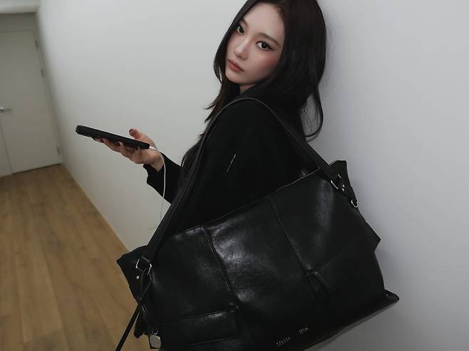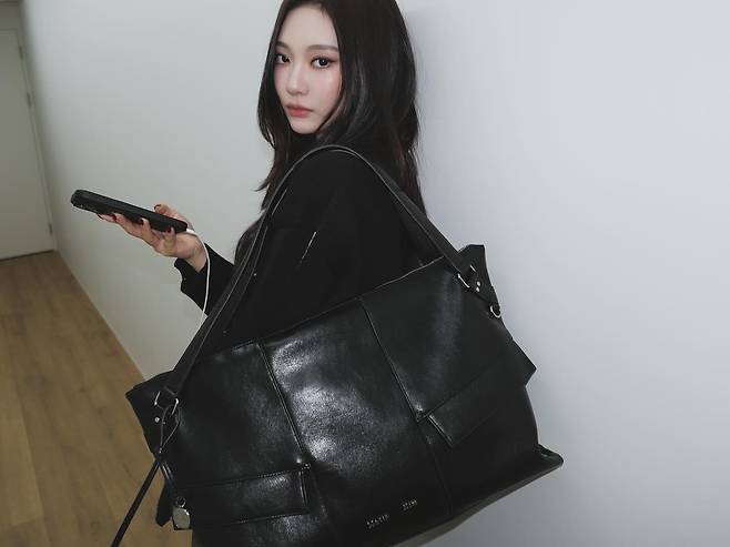 닝닝은 최근 다시 유행 중인 화이트 유선 이어폰을 착용해 몽환적인 '너드미'를 더했으며, 한 손에 든 큼직한 블랙 레더 숄더백은 실용성과 스타일을 동시에 잡아 닝닝 특유의 쿨한 분위기를 배가시키고 있는데요.