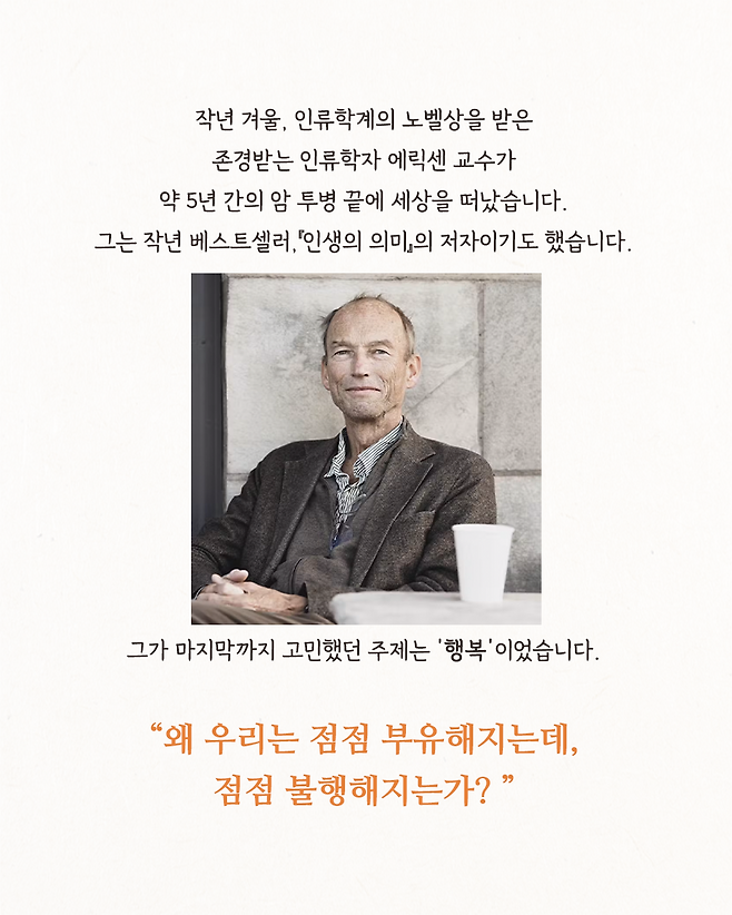 - 베스트셀러 『인생의 의미』 작가인 토마스 힐란드 에릭센 사후에 출간되는 첫 책