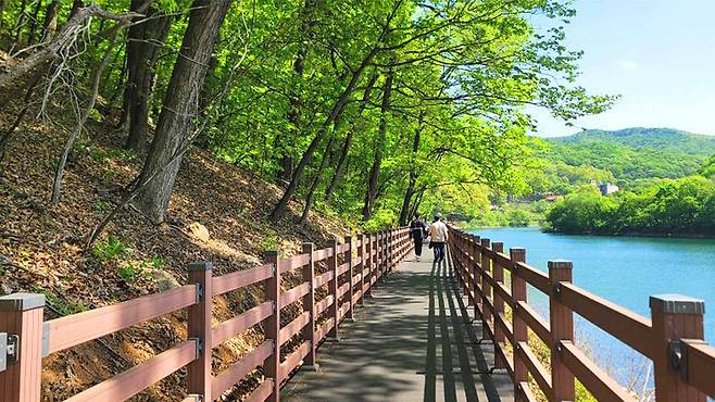 마장호수를 걷는 길은 크게 두 가지로 나뉜다. 먼저 많은 사람들이 즐겨 찾는 3.6km 길이의 수변 데크는 마치 물 위를 걷는 듯한 경험을 제공한다.