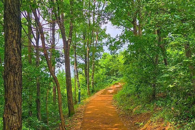 출렁다리를 지나면 숲이 품어주는 따뜻한 햇살이 등산객을 맞이한다. 낙엽송 조림지를 통과해 도착한 마고산성은 삼국시대 고갯길을 방어하기 위해 지어진 산성으로, 지금은 자연과 어우러진 흔적으로만 남아 있다.