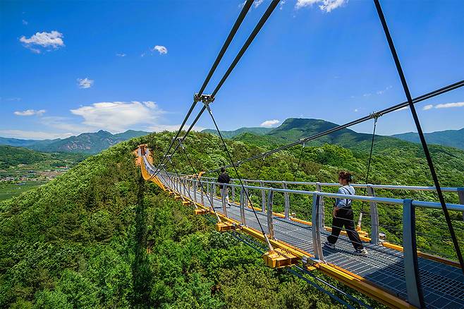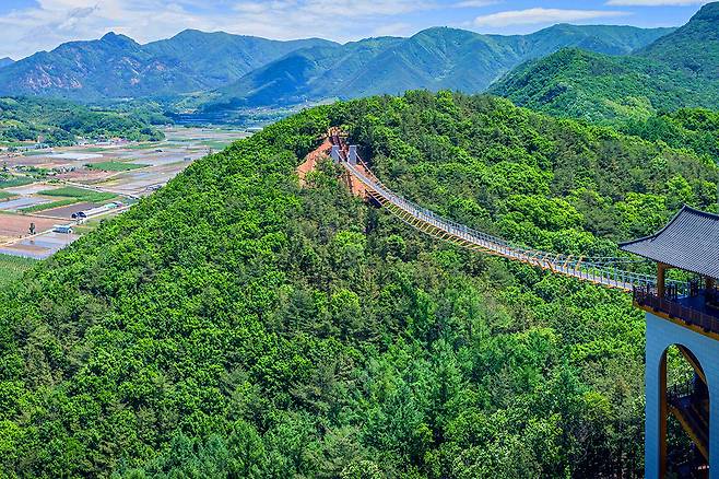 초입은 만만치 않다. 관산정을 지나며 숨이 턱에 찰 정도의 오르막이 기다리고 있다. 하지만 이내 등장하는 출렁다리에서, 이 고비는 충분히 보상받는다.