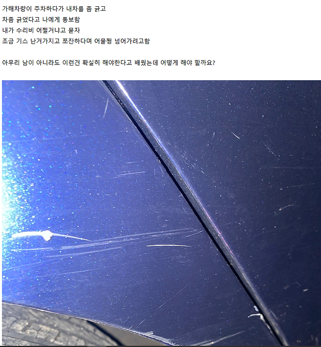 아는 사람이 차를 긁었는데 어물쩡 넘어가려함.jpg