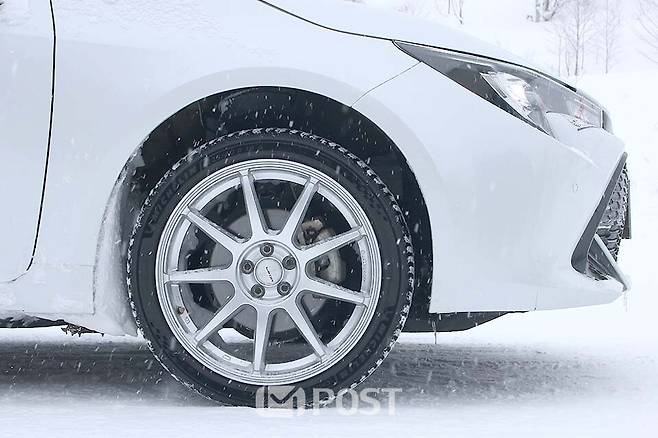 두 번째 테스트는 같은 코스에서 다른 차와 타이어가 마련됐다. 시승차는 토요타의 준중형 해치백인 코롤라 스포츠. 타이어는 크로스클라이밋 3 스포츠와 H 제조사의 B 제품을 끼웠다.