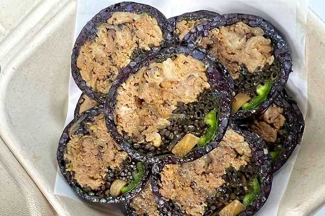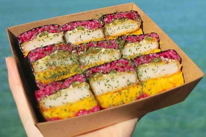 '제주또시랑'은 신선한 도시락을 맛볼 수 있는 곳입니다. 대표 메뉴로는 제주흑돼지를 듬뿍 넣어 만든 돌담김밥인데요. 와사비마요소스에 찍어 먹는 메뉴로 독특한 비주얼부터 눈길을 사로잡죠.