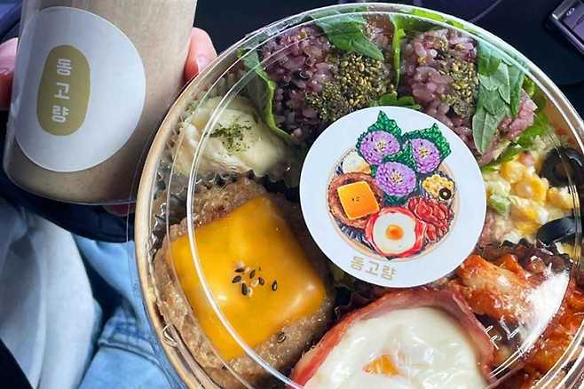 대표 메뉴인 동고량은 계절나물을 사용한 유채참치주먹밥, 흑돼지머핀, 베이컨달걀샐러드,약고추장, 발사믹토마토, 샐러리피클, 미소된장국으로 이루어졌는데요. 푸짐한 음식과 비주얼 덕분에 여행객들에게 사랑받는 도시락 전문점입니다. 동고량은 포장