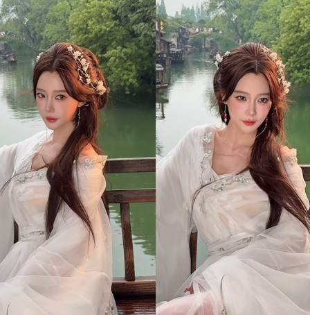 특히 흠잡을 데 없는 도자기 피부, 절제된 눈매, 부드러운 입꼬리, 섬세하게 연출된 헤어스타일과 머리장식까지 완벽하게 어우러져 한 폭의 동양화 속 주인공 같은 분위기를 완성했다.