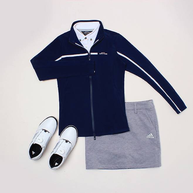그레이 컬러의 스커트, 무채색의 골프화