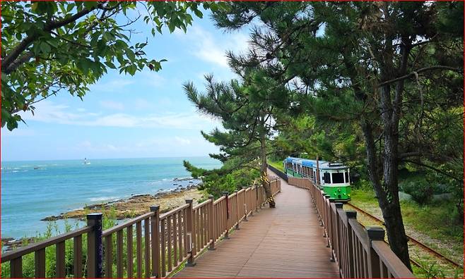 무더운 여름, 에어컨 바람만 쐬기엔 아쉽다면 바다 옆 데크길을 걸어보는 건 어떨까요? 경사 없는 데크길이라 누구나 편하게 걸을 수 있고, 곳곳에 쉼터와 포토존도 마련되어 있어 중간중간 쉬어가며 풍경을 즐기기 좋습니다. 열차가 지나갈 때 손 흔드는 여행객들과 마주치는 순간도 작은 재미를 더해줍니다.