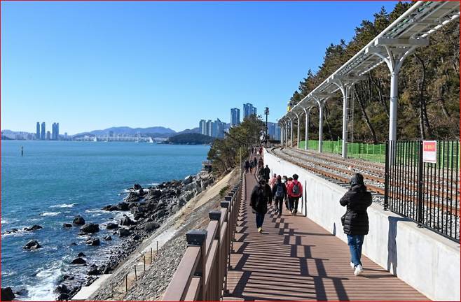 해운대의 푸른 바다를 옆에 두고, 철길 따라 천천히 걸어보는 산책—열차가 지나가면 손도 흔들고, 전망대에서는 그림 같은 풍경도 감상하세요.