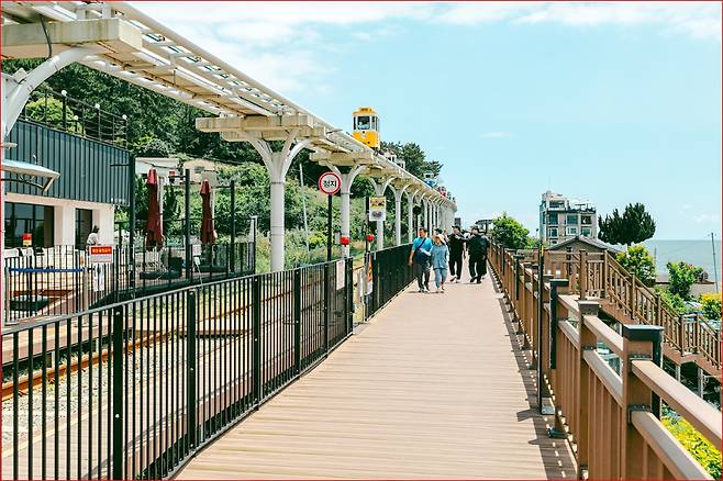 무더운 여름, 에어컨 바람만 쐬기엔 아쉽다면 바다 옆 데크길을 걸어보는 건 어떨까요? 경사 없는 데크길이라 누구나 편하게 걸을 수 있고, 곳곳에 쉼터와 포토존도 마련되어 있어 중간중간 쉬어가며 풍경을 즐기기 좋습니다. 열차가 지나갈 때 손 흔드는 여행객들과 마주치는 순간도 작은 재미를 더해줍니다.