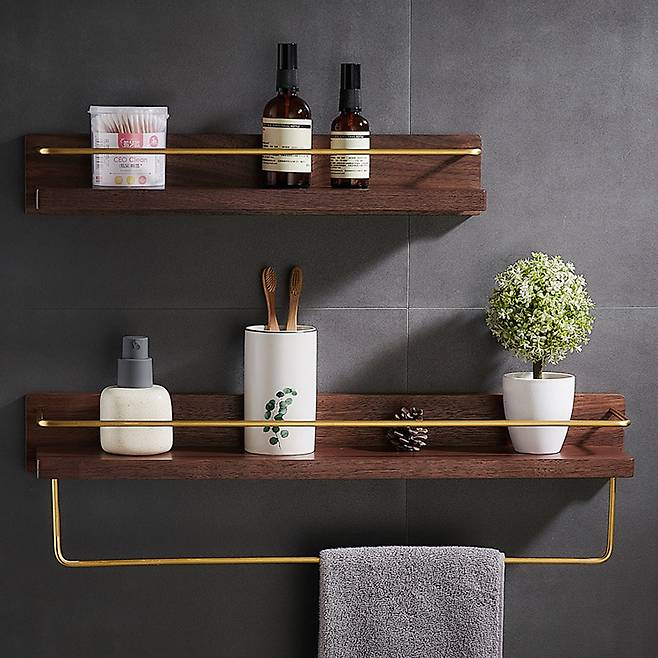 침대 머리 쪽 헤드보드로 활용하면 침실 전체 분위기가 카페처럼 바뀌는 효과를 볼 수 있다. 원목 선반을 벽에 달아서 작은 빈티지 소품들을 올려두는 것도 공간 활용과 인테리어를 동시에 잡는 좋은 방법이다. 새 원목보다는 약간의 사용감이 있는 제품이 빈티지 감성에 훨씬 잘 어울린다.