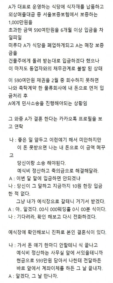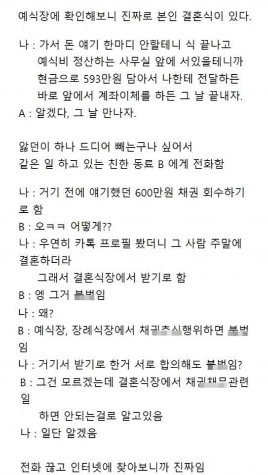 결혼식장에 찾아가 떼인돈 받은 사람 후기
