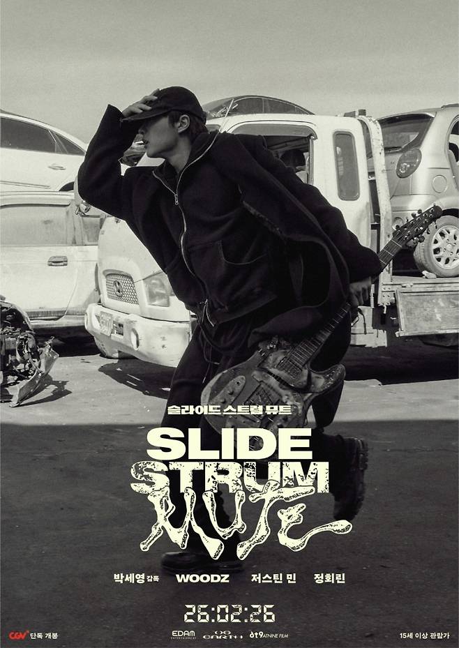 <슬라이드 스트럼 뮤트>는 오디션에 불합격한 어느 밤, 의문의 남자가 맡긴 부서진 기타를 연주한 우진이 저주받은 시간을 가로질러 욕망으로 질주하는 이야기를 담은 쇼츠 필름인데요. 스타가 되고 싶었던 우진의 욕망, 그 화려함의 끝에는 어떠한 결말이 기다리고 있을지! 음악과 영화의 경계를 부술, <슬라이드 스트럼 뮤트>는 극장에서 만나보실 수 있어요. 🎤