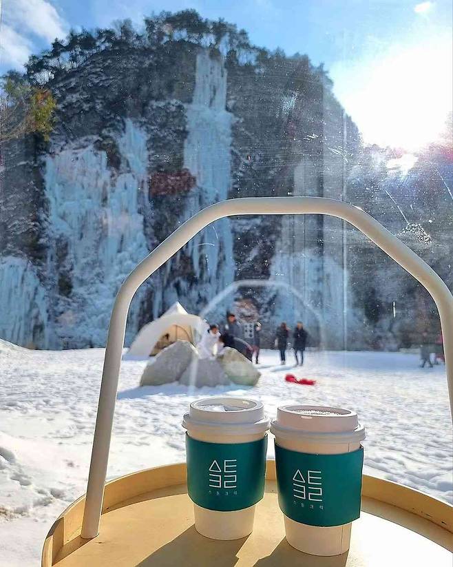 설산과 더불어 빙벽을 함께 볼 수 있는 원주 '스톤크릭'. 입이 떡 벌어지는 절벽 뷰를 감상할 수 있는데 넓게 마련된 야외 좌석에서 절벽을 바로 보고 있노라면 마치 압도되는 스케일에 넋을 놓게된다고. 여름에도 충분히 매력 있지만 산과 절벽이 확실한 매력을 발산할 때는 겨울에 빙벽이 얼었을 때. 시그니처 블렌드 원두로 내린 아메리카노와 다양한 밀크티와 함께 자연을 벗 삼아 이색적인 절경을 즐기기에 안성맞춤이다.