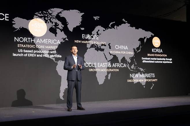 현대차는 글로벌 자동차 업계의 불확실성에도 불구하고 지난해 먼저 공개한 바 있는 2030년 글로벌 555만대 판매 목표를 이번 CEO 인베스터 데이에서 유지했을 뿐만 아니라, 구체적인 지역 판매 목표도 제시했다. 2030년 권역 별로 ▲북미 26% ▲인도 15% ▲유럽 15% ▲한국 13% ▲중동 및 아프리카 8% ▲중남미 8% ▲중국 8% ▲아시아태평양(중국 제외) 7% 등의 비중으로 자동차 판매를 추진하기로 했다.