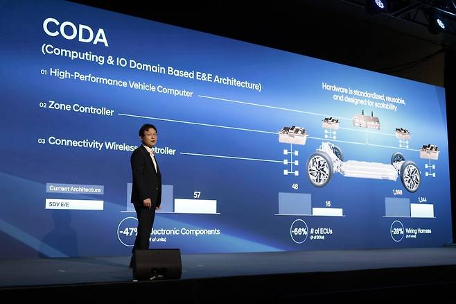 차량 하드웨어를 표준화·단순화해 복잡성을 줄이고, 유연한 소프트웨어 아키텍처CODA(Computing & IO domain-based E&E architecture)와 차량 운영체제 ‘Pleos Vehicle OS(플레오스)’를 적용해 새로운 서비스와 기능을 신속히 반영할 수 있는 소프트웨어 기반을 마련할 계획이다. 현대차는 2026년까지 SDV 페이스 카(Pace Car) 개발 프로젝트를 완료하고 양산차에 확대 적용하는 것을 목표로 삼고 있다. 내년 2분기에는 차세대 인포테인먼트 시스템 ‘Pleos Connect(플레오스 커넥트)’가 적용된 차량들이 처음 출시될 예정이다.
