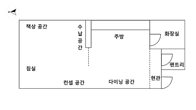 저희 집은 원룸 구조예요. 한 방에 침실 공간, 거실 공간, 주방까지 함께 있어 공간을 효율적으로 쓰기 위해서는 공간 분리가 필요할 거라고 생각했습니다.