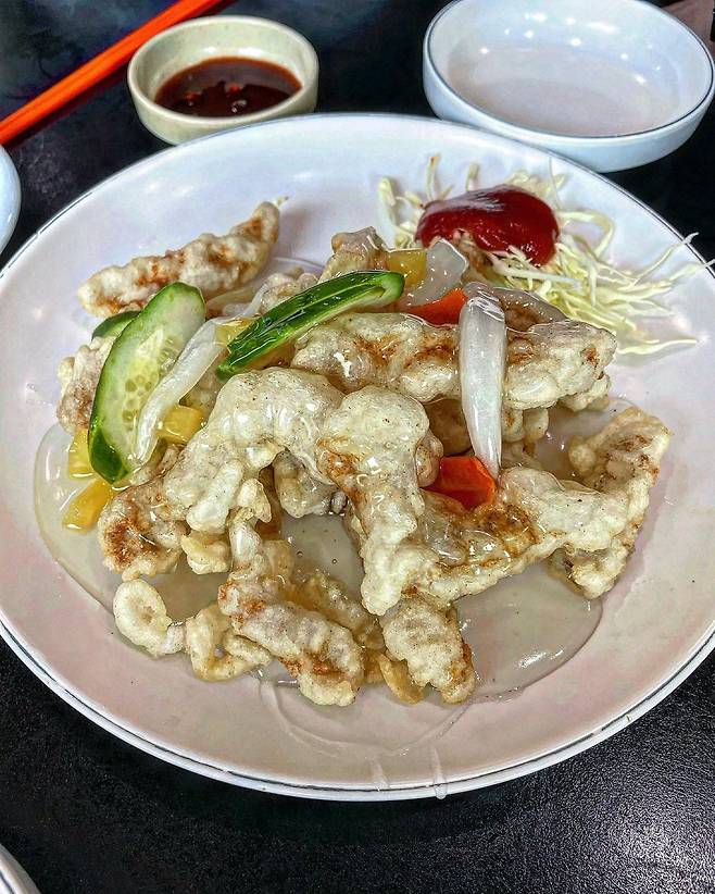 칼칼한 고추짜장 맛집 동춘동 '만강홍'. 얼마전 '나혼자산다' 에서 학창시절 단골 중식당이라며 소개한 곳으로 유명한 로컬맛집이다. 면과 짜장소스가 따로 나오는 고추짜장은 이 집의 인기메뉴. 매콤한 고추가 들어간 소스는 양파의 아삭한 식감과 어우러져 느끼하지않고 찰진 면과도 잘 어우러진다. 첫 입부터 많이 맵지않고 먹다보면 알싸하게 느껴지는 매운맛이 중독성있는 맛이라고. 꾸밈없이 심플하게 나오는 탕수육은 투명한 소스와 잘 튀겨진 고기가 만나 부드럽고 달콤한 맛을 낸다.