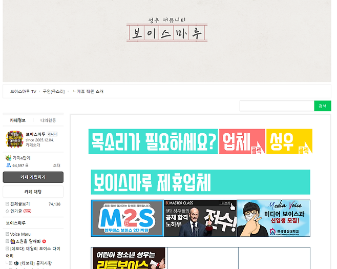 마지막은 국내에서 가장 큰 커뮤니티, 네이버 카페 보이스마루입니다. 구인 게시판에 꾸준히 수요가 올라오고 있는데요. 그렇기 때문에 게시판 알람 설정을 해놓고 누구보다 빠르게 구인 글을 확인하는 것이 필요합니다. 이 플랫폼은 성우가 부담해야 하는 수수료가 없다는 게 가장 큰 장점입니다.