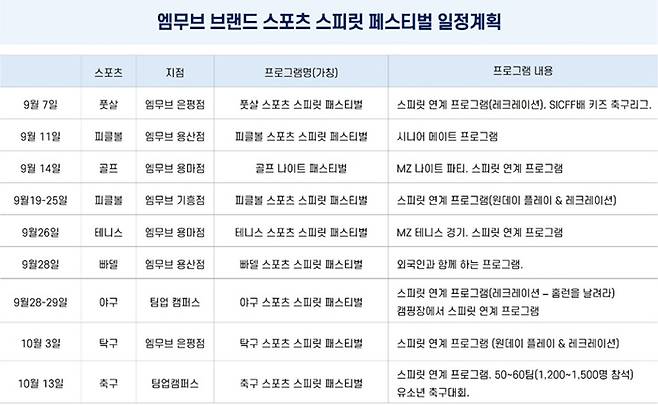 이번 '스포츠 스피릿 페스티벌'은 엠무브의 브랜드 통합을 기념하며, 스포츠를 통해 가족, 친구, 이웃, 국경을 초월해 하나가 되는 의미를 담고 있다.
