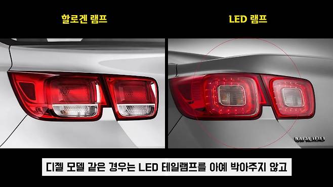 이 차량 가솔린 모델 같은 경우에는 LED 박힌 테일 램프를 넣어주는데, 디젤 모델 같은 경우는 LED 테일 램프를 아예 박아주지 않고 할로겐 벌브등으로 박아주거든요. 그래서 제가 튜닝하면서 교체를 했습니다. 순정 벌브는 너무 마음에 안 들더라고요.