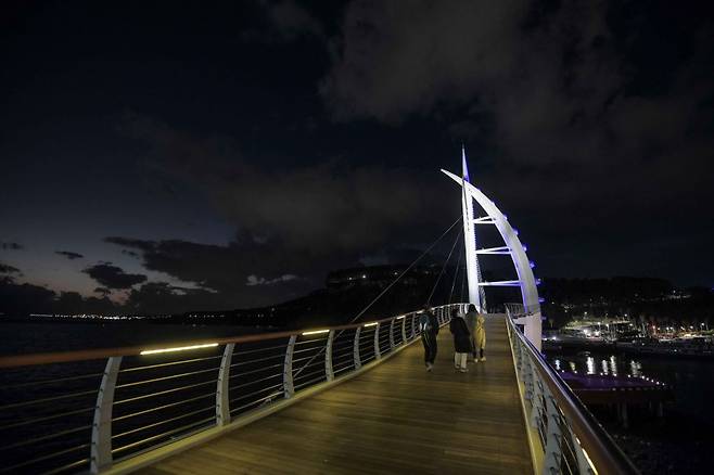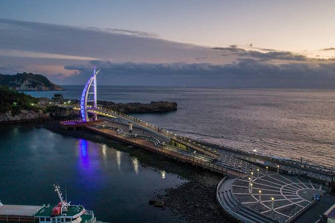 새연교는 바람과 돛을 형상화한 높이 45m의 주탑과 화려한 LED 조명 시설 덕분에, 낮이나 밤이나 관광객들의 사랑을 받고 있죠.