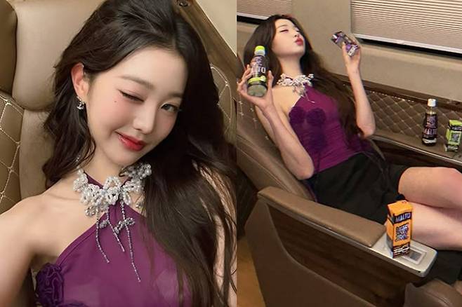 공개된 사진 속 장원영은 스케줄 중 차 안에서 아름다운 미모와 완벽한 몸매를 뽐내고 있는데요~