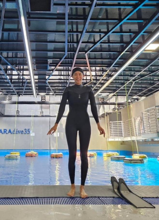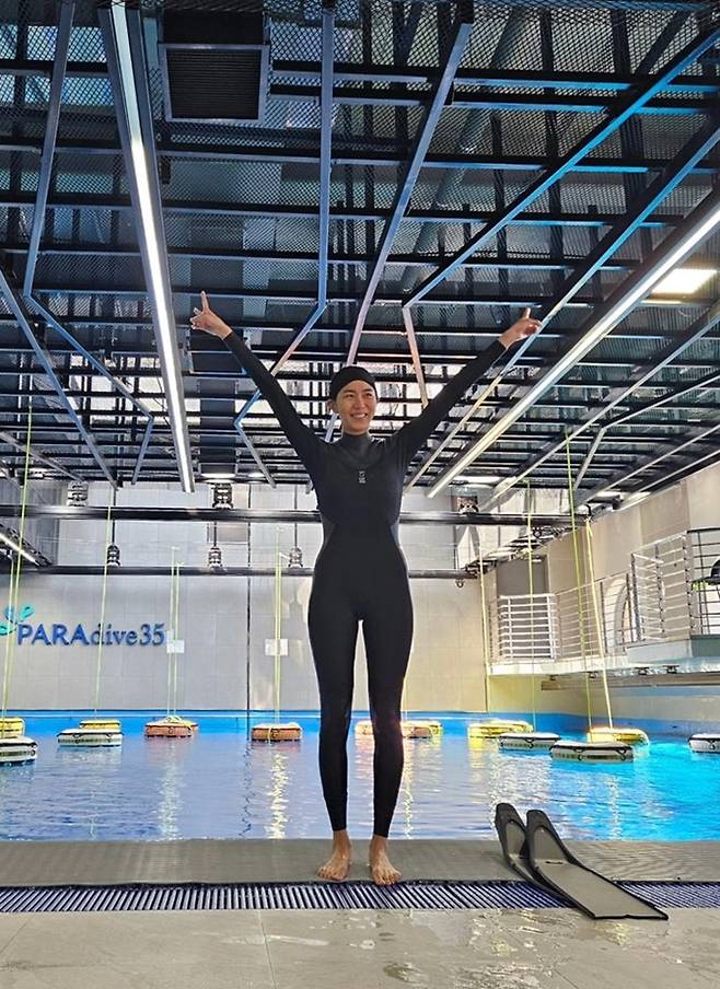 배우 유이가 스킨스쿠버 바시슈트룩으로 군살 하나 없는 놀라운 탄탄 몸매를 뽐냈다.