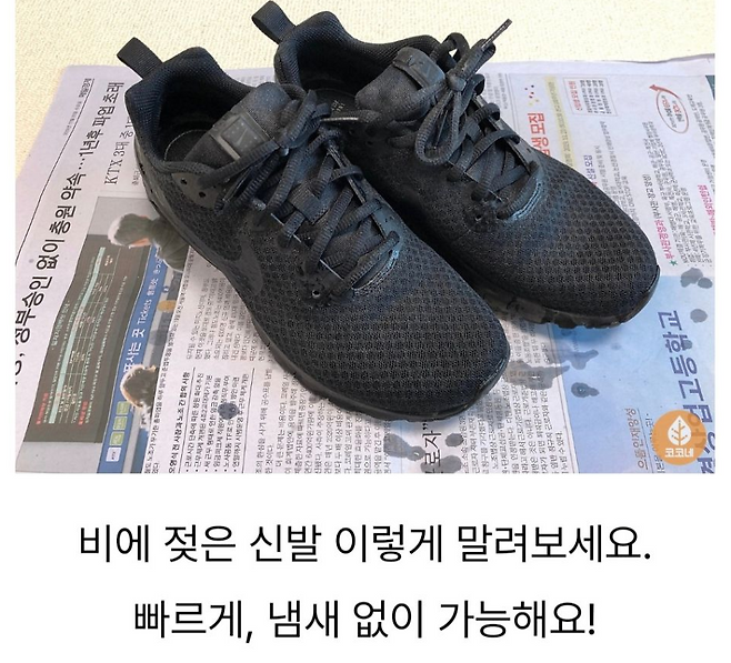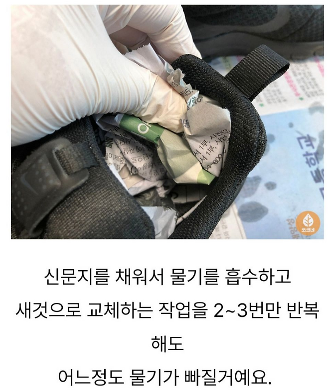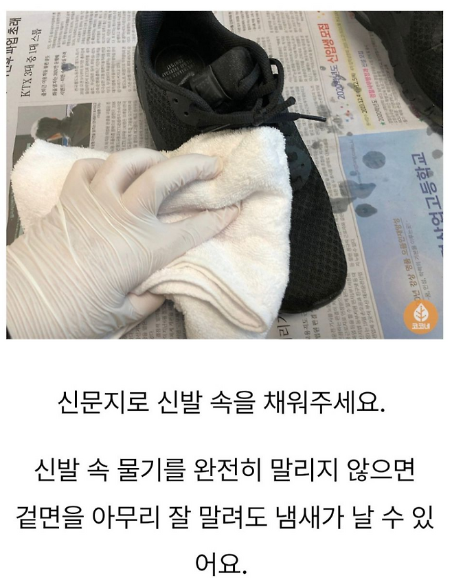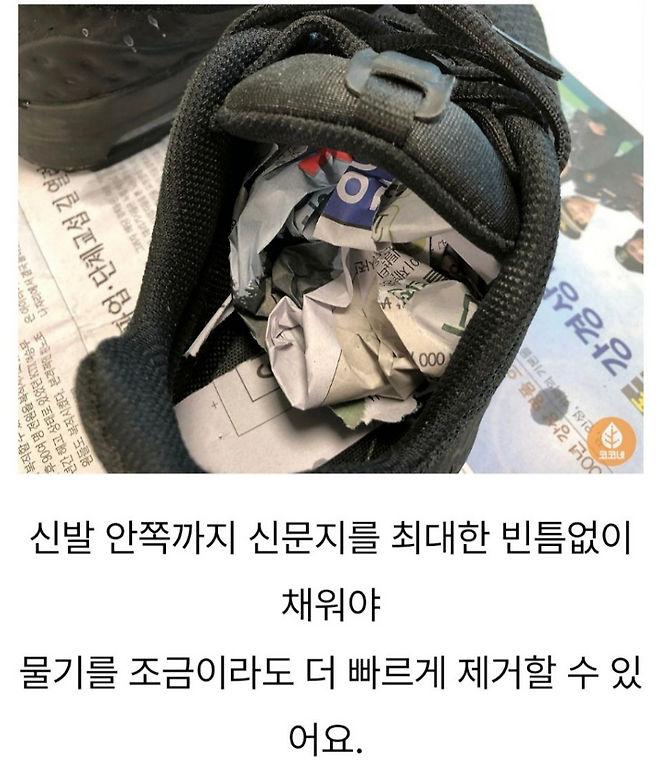 신문지를 구겨서 신발 안에 채우면 습기 제거 + 냄새 흡수