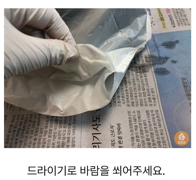 급할 때 헤어드라이어를 사용할 수도 있지만뜨거운 바람은 소재 손상을 유발할 수 있어요.