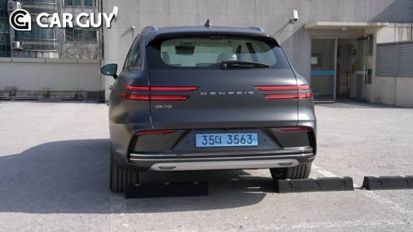 후면은 디자인의 최고점이다. 전면 강인한 인상과 함께 후면은 SUV임에도 불구하고 쿠페를 연상시키는 날렵한 실루엣으로 GV70만의 독창적인 매력을 더한다. 기존 후면 하단부 범퍼에 위치해 불만이 나왔던 턴 시그널을 상단 리어램프와 통합하는 것으로 개선했다. 기존 고객의 불만을 적극 반영한 것으로 칭찬하고 싶은 부분이다.