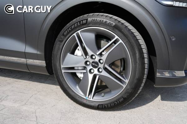 측면은 거의 바뀐 게 없다. 유려한 라인과 균형 잡힌 비율도 인상적이다. 대신 새롭게 바뀐 20인치 휠 디자인이 매력적이다. 5스포크를 살리면서도 전기차다운 미래지향적 디자인을 살려냈다. 최근 나온 GV60 페이스리프트 휠 디자인과 동일하다.