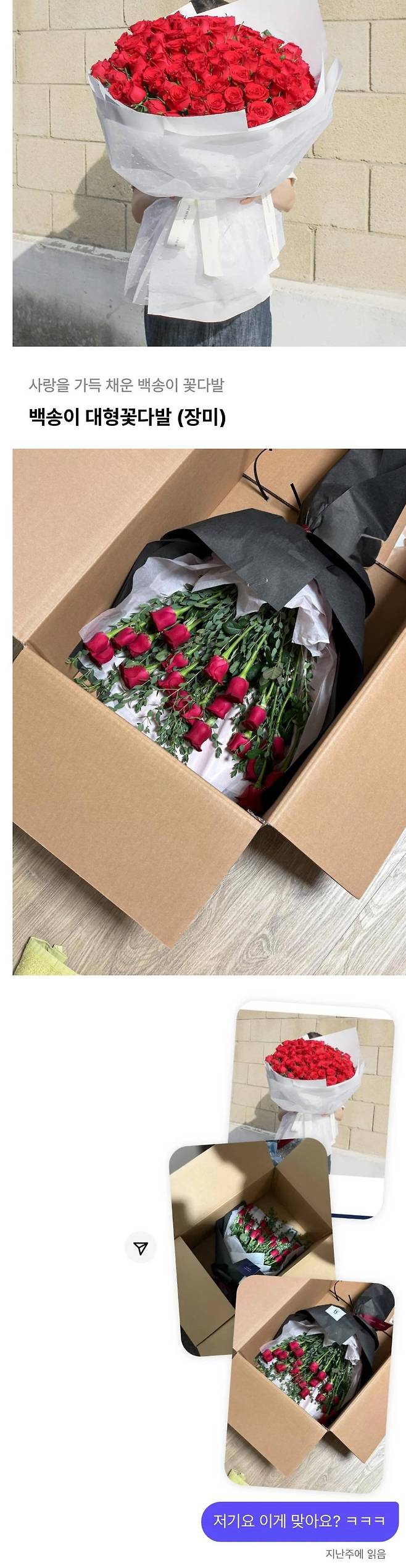 35만 원 짜리 대형 꽃다발을 받고 놀란 사람