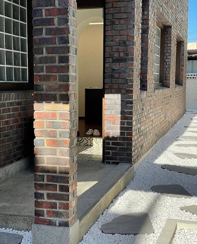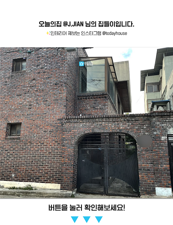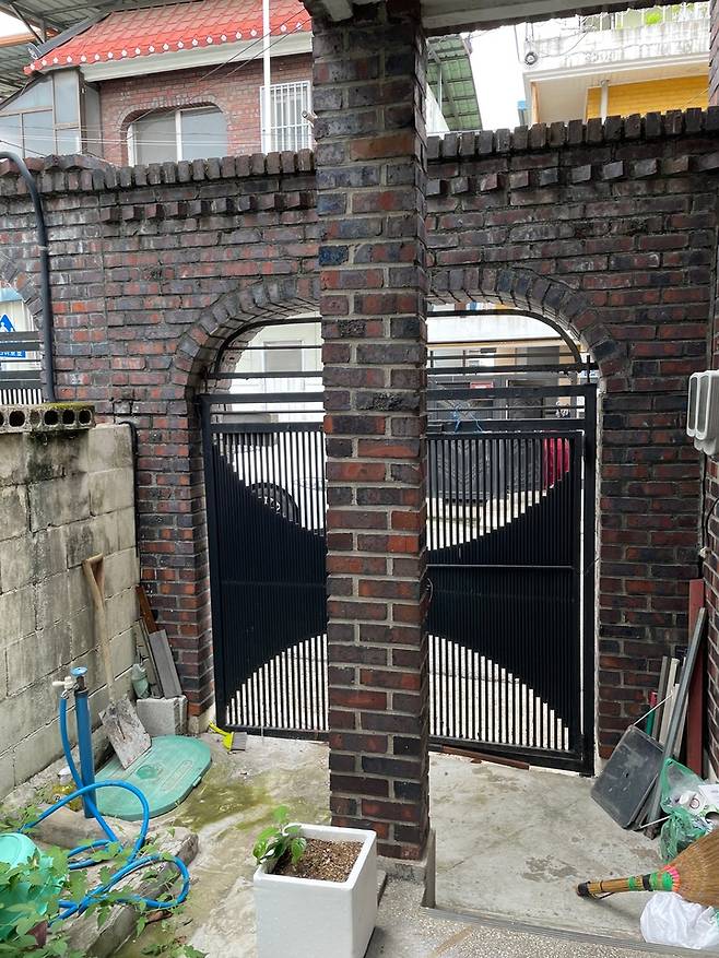 공사 후 우리 집 외관이에요. 사실 이 빨간 벽돌과 아치 대문에 반해서 선택했던 집이었거든요 :) 공사하면서도 이 부분은 최대한 건드리지 않았어요!