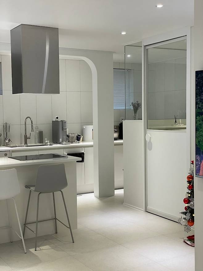 벽을 철거하면서 만들어진 기둥 때문에 불편할까 봐 걱정을 많이 했는데 지내다 보니 크게 문제 되지는 않는 것 같아요^^ 오히려 인테리어 효과를 톡톡히 보는 중이에요!