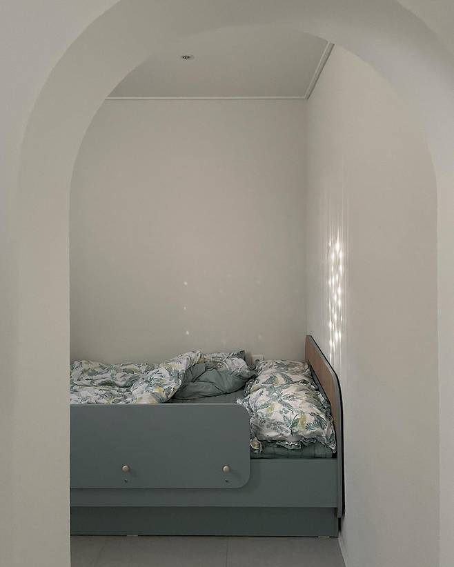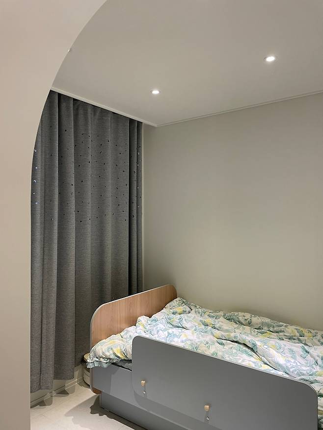 여기는 놀이방을 지나 아치문을 통과하면 나오는 아이 침실이에요! 이곳 역시 구조에 맞추다 보니 침실과 놀이방을 분리하게 되었어요.