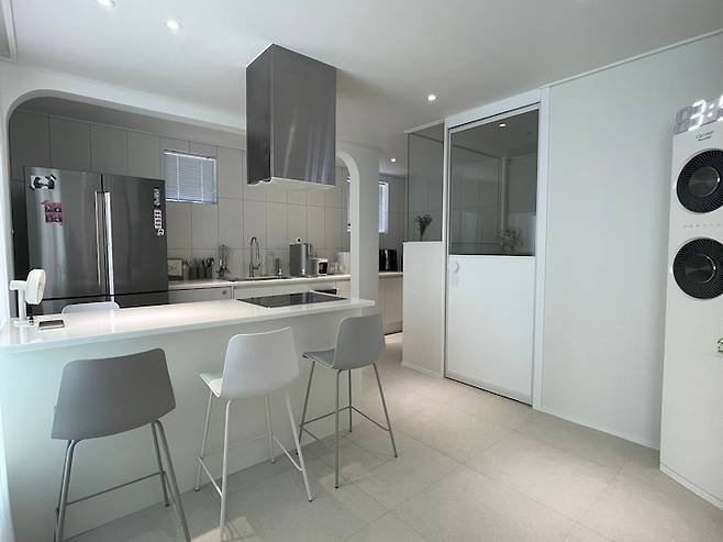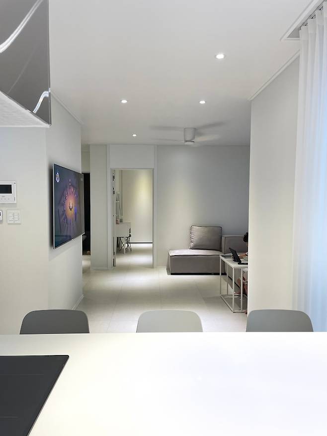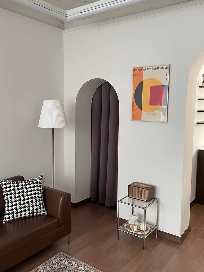 벽을 철거하면서 만들어진 기둥 때문에 불편할까 봐 걱정을 많이 했는데 지내다 보니 크게 문제 되지는 않는 것 같아요^^ 오히려 인테리어 효과를 톡톡히 보는 중이에요!