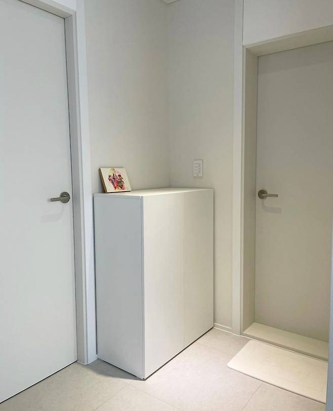 아이 방과 욕실 사이에 있는 공간에 딱 맞는 수납장을 찾아서 수납력을 조금 더 높였답니다.