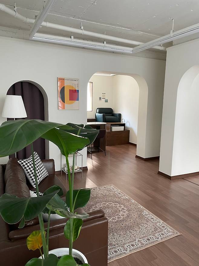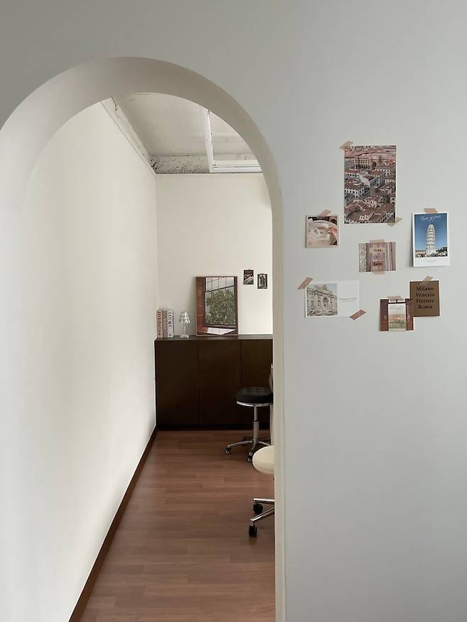 지금부터는 제가 개인적으로 일을 하는 작업실이자 상업공간으로 사용하는 1층을 살짝 보여드릴게요. 원래 가정집으로 쓰이던 곳이다 보니 인테리어 자체도 편안한 집처럼 꾸며봤어요. 상업공간이지만 집 인테리어 참고하기도 좋으실 거예요!