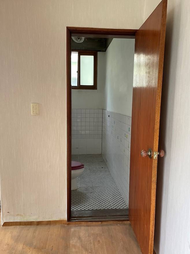 현재의 모습을 전혀 찾아볼 수 없는 화장실이에요. 주택 구조상 창이 있으면 욕실이 너무 추울 것 같아서 환풍기를 설치하고 창을 없앴어요.