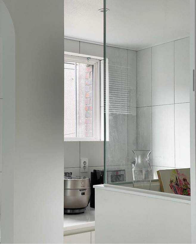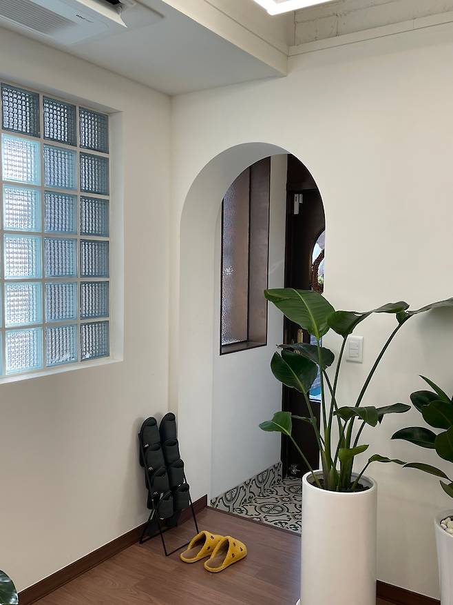 인테리어를 구상하면서 꼭 넣어 보고 싶었던 소재이기도 하고 옆집과 바로 붙어 있다 보니 사생활 보호 차원에서도 창을 없애야겠다고 생각했었거든요.
