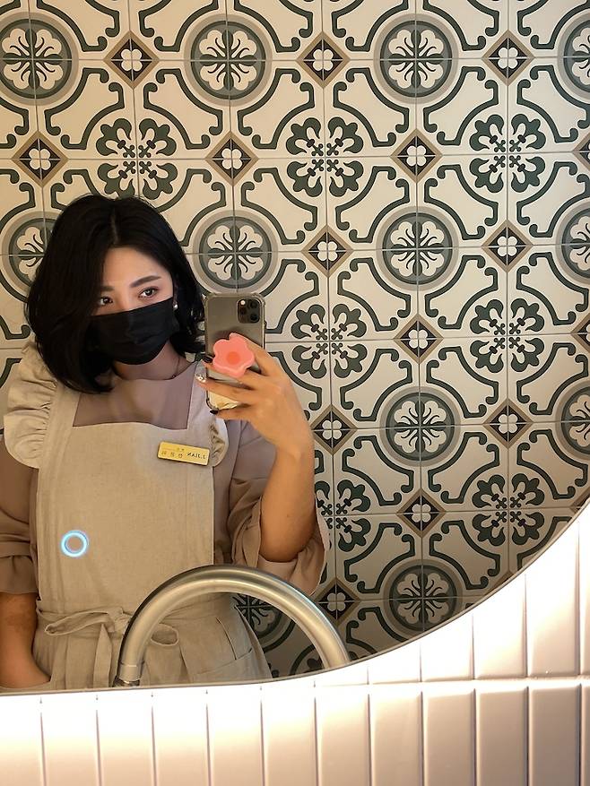 거울 맞은편 벽에 타일로 포인트를 주었더니 너무 예쁜 포토존이 되었어요!